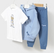 Contains organic cotton. T-shirt set with matching dungarees for newborn baby boy.Long sleeved T-shirt for newborn baby boy. Round neckline.Design with suspenders. Snap button fastening at crotch for easy dressing. Snap fasteners on shoulder straps and waistband to make it easier to put the garment on. Elastic waistband. Made from soft elasticated...