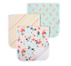 Our burp cloths are created with 100% ultra-soft cotton layers on the front (patterned) and back.  You can feel confident that baby will feel cozy against your shoulder while burping.