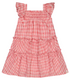 Our Callie Dress features a darling contrast eyelet collar, smocked front bodice, gathered skirt, and ruffle sleeves, with buttons at the back for easy dressing. Matching bloomers included with all sizes. Featuring our 'forest check' pattern. Care: Machine wash cold. Lay flat to dry. Made of 100% organic cotton.