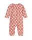 This romper is designed in a deep navy hue that creates a striking contrast against its colorful floral embroidery, featuring delicate patterns in warm shades of orange, yellow, and white across the chest and sleeves. Made with lightweight, breathable fabric, it ensures your baby stays comfy all day long, whether they?re exploring or napping.