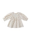 Our Callie Dress features crochet trim, a darling collar, smocked front bodice, gathered skirt, and ruffle sleeves, with buttons at the back for easy dressing. Matching bloomers included with all sizes. Featuring our 'holiday fleur' print on our 'cranberry' hue. Care: Machine wash cold. Lay flat to dry. Made of...