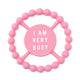 Our teething rings were designed with purpose! The rounded shape of the Happy Teether provides easy grip from any angle. The silicone material and beaded design give the right amount of resistance to sore gums and newly developed teeth. In over 40 colors, there is a saying for everyone! -Affix...