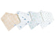 Our burp cloths are created with 100% ultra-soft cotton layers on the front (patterned) and back.  You can feel confident that baby will feel cozy against your shoulder while burping.